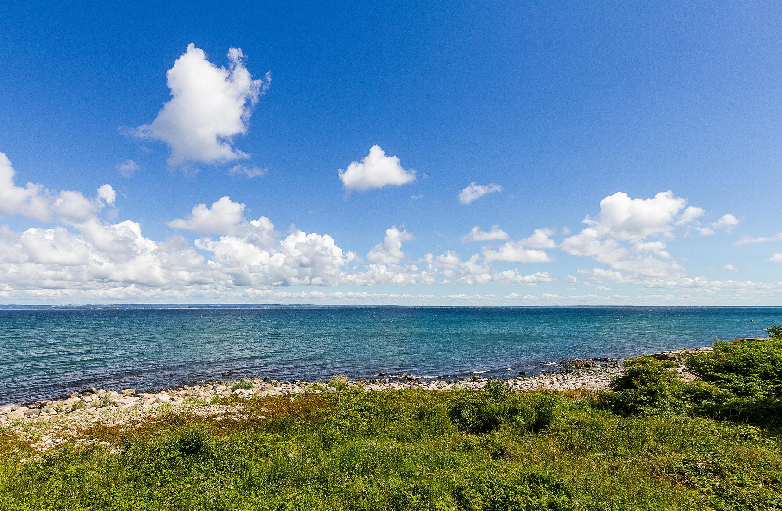 Fyra tomter med en del markeringar av fornfynd. Delvis svåra markförhållanden och en väldigt restriktiv detaljplan. Tack vare en flexibel kommun och modiga byggherrar blev resultatet fyra väldigt olika och exklusiva Strandhem.